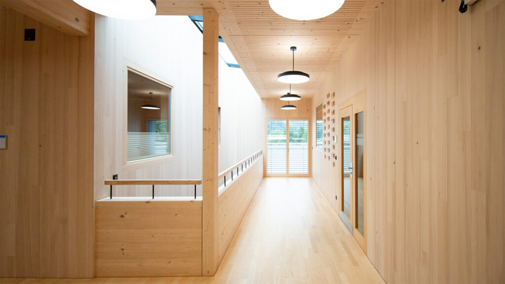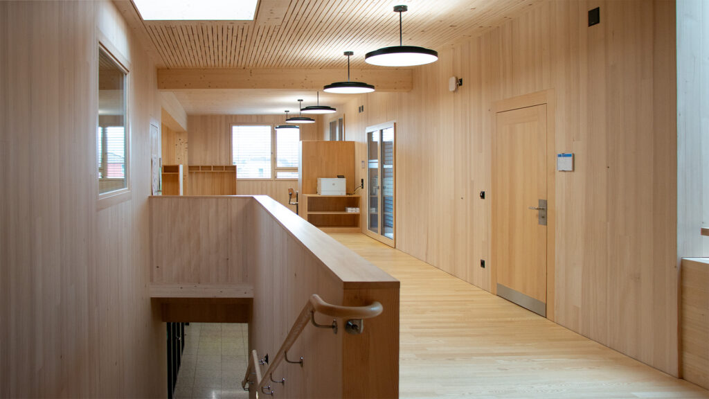 Bei diesem Projekt durfte unser Team Zimmerei den kompletten Holzbau planen und umsetzen. Dabei wurden Wandelemente und Tragkonstruktionen vorproduziert und verbaut. Die Deckenelemente wurden durch die Lignatur AG aus Waldstatt vorproduziert und durch uns montiert.