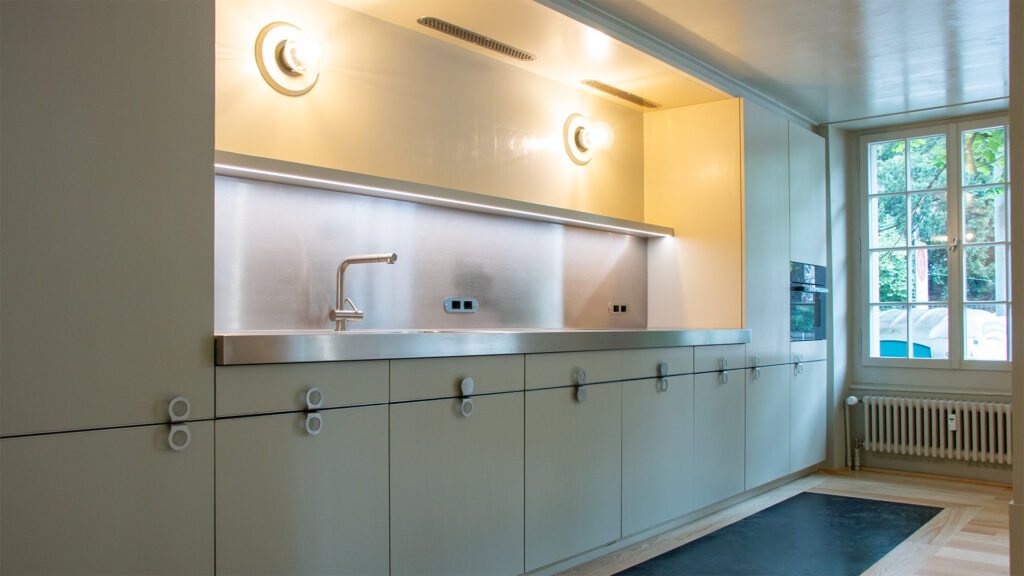 Mitten im Herzen von Zürich erstrahlt das historische Barockhaus „Haus zum Kiel“ nach einer umfassenden Totalsanierung in neuem Glanz. Unser Schreinerei-Team hatte das besondere Privileg, die Küchen für die 8 Wohnungen zu entwerfen und umzusetzen.