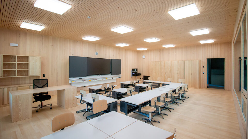Diese wurden in unserem Betrieb produziert, sorgfältig verpackt und mit Transportern und LKWs ins schöne Graubünden geliefert. Dort wurden sie fachmännisch montiert, um die Schulatmosphäre zu bereichern.
