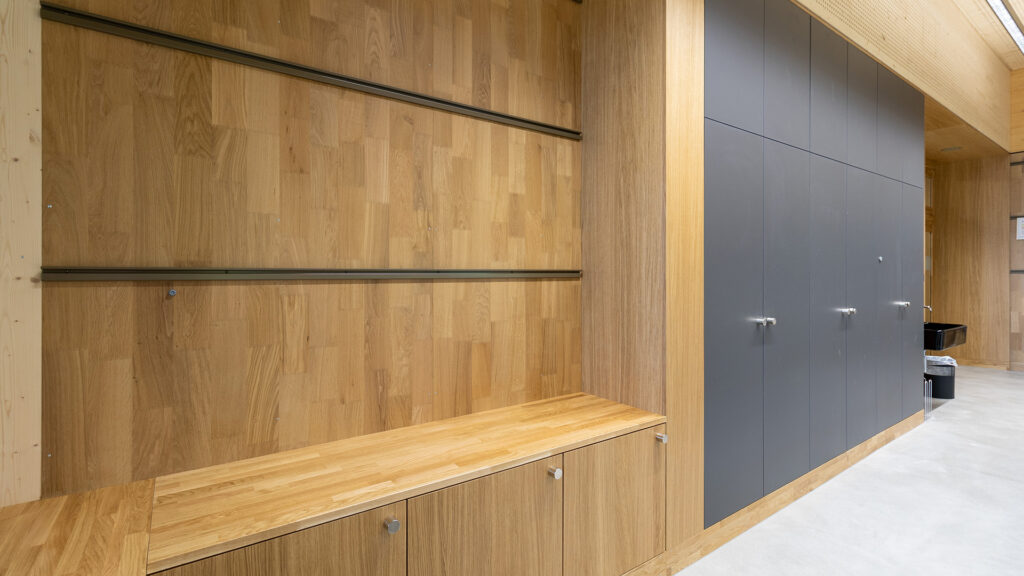 In Uitikon ist die beeindruckende Schulanlage Allmend entstanden – eine Kombination aus Massivbau- und Holzbauweise mit einer Dreifachturnhalle. Unsere Zimmerei hatte die Ehre, den gesamten Holzbau dieses Projekts umzusetzen. Im Innenausbau durfte unsere Schreinerei ihre Expertise einbringen und diverse Möbel, Fensterbänke sowie verschiedenste Wandverkleidungen realisieren.