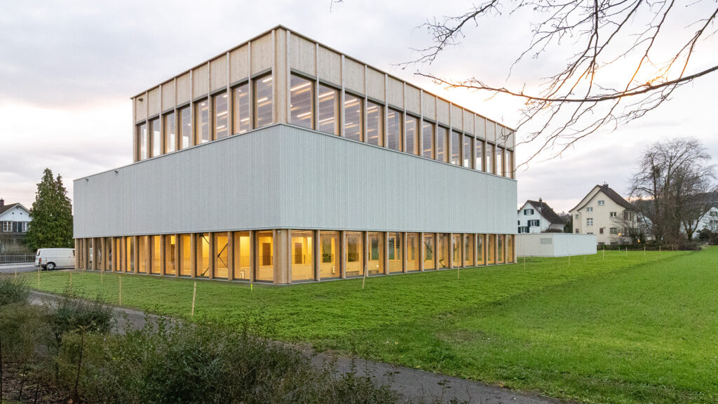 Unser Zimmerei-Team durfte die den kompletten Holzbau, sowie die Fassade planen und umsetzen. Im Innenausbau durfte das Schreiner-Team sämtliche Wand- und Deckenverkleidungen, Küche und Sitzbank im Foyer umsetzen.