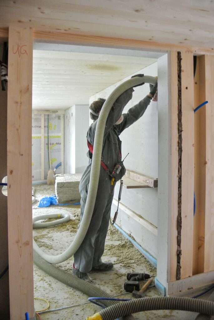 Seit 1990 setzen wir auf Zellulose als Dämmmaterial. Dieses besteht zu 92% aus recyceltem Tageszeitungspapier, das aus Altpapiersammlungen und Druckereiabfällen gewonnen wird. Vor der Verarbeitung durchläuft das Rohmaterial strenge Qualitätskontrollen, um höchste Standards zu garantieren. Zusätzlich werden 4% Borsäure und 4% mineralische Salze beigemischt, die einen effektiven Brandschutz gewährleisten.